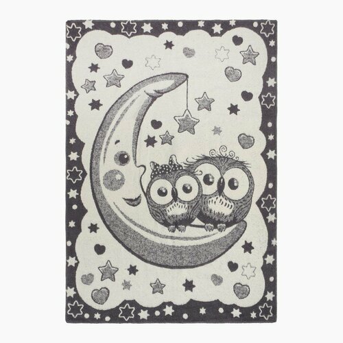 Одеяло байковое Совы на луне 95х135см, цвет серый 400г/м хл100%