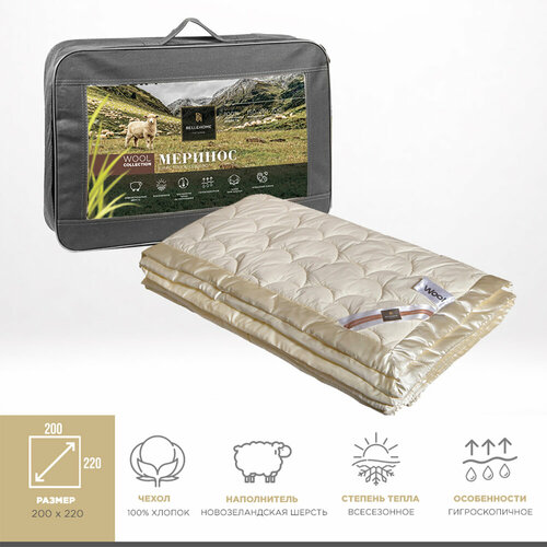Одеяло BELLEHOME "Меринос", 200х220 см, овечья шерсть, всесезонное