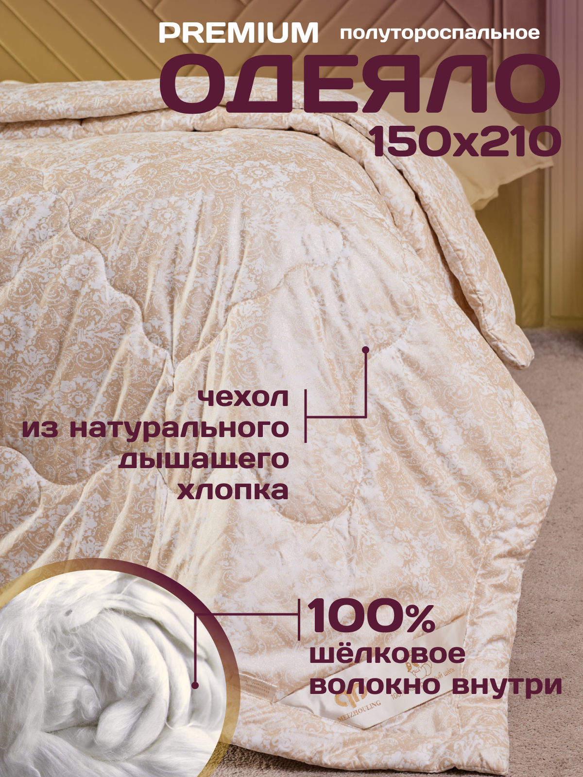 Одеяло 1.5 спальное 150х210 Шелкопряд всесезонное, зимнее / 1,5 спальное / полуторка / наполнитель - 100% шелк тусса / чехол - хлопок, сатин-жаккард