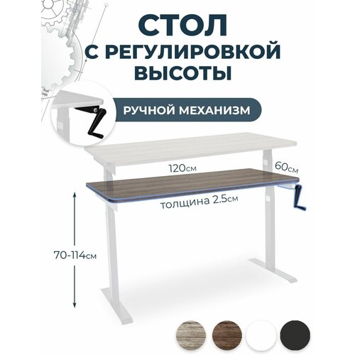 Компьютерный стол с подъемником LuxAlto, дуб темно-коричневый ЛДСП 120x60x2,5 см, белое подстолье М1