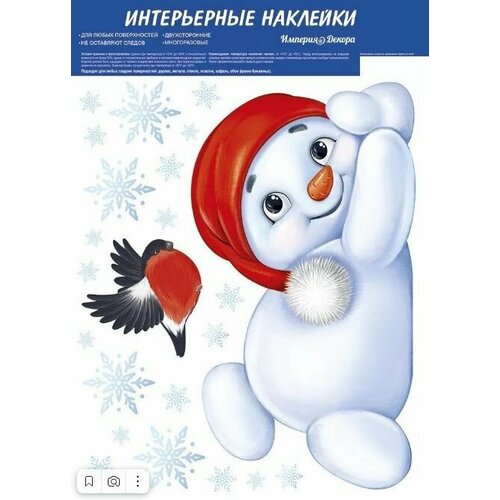 Новогодние наклейки на окно "Снеговик мечтатель", двусторонние, размер листа 23,7х33,2 см