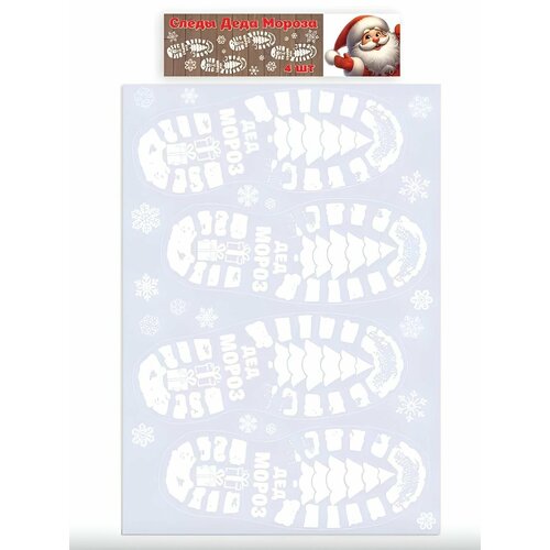 Оформительские наклейки "Следы Деда Мороза" двусторонние, размер листа 33,2х47 см.