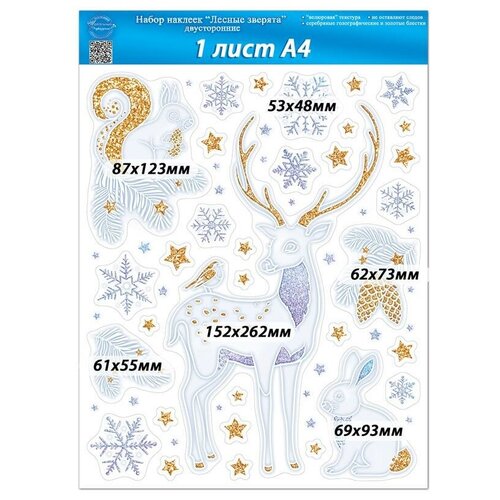 Новогоднее украшение для окон и интерьера А4 Открытая планета "Лесные зверята", 242*332мм ПВХ, пластизоль, цветные блестки в лаке, 1 лист