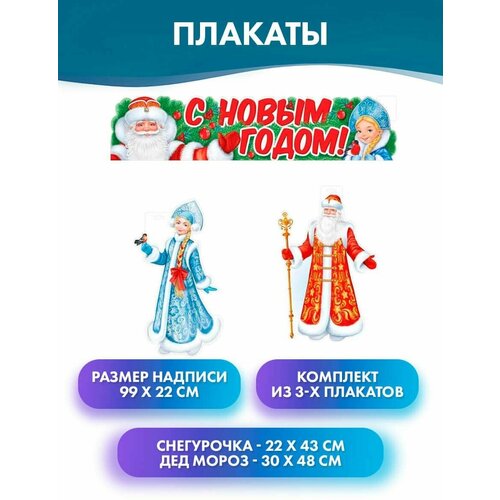 "С НГ Дедушка мороз и Снегурочка", 2 плаката А3, 1 плакат-растяжка 99,4х22,4 см, бумажные украшения на Новый год