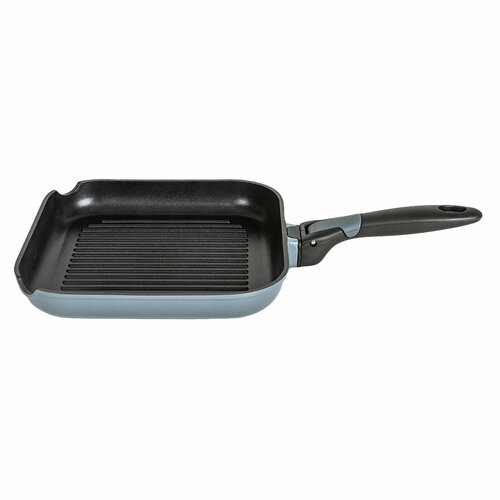 Сковорода-гриль со съемной ручкой ? 28 см, Литой алюминий, Инновационная антипригарная система 5G, Cтойкость к царапинам, Подходит для всех типов плит, кроме индукционных Толщина стенок – 4 мм Толщина дна – 7 мм, Цвет покрытия - серый мрамор