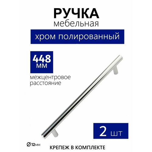 Ручка рейлинг мебельная 448 мм, комплект 2шт, хром палированный