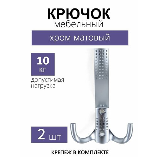 Крючюк мебельный нактоли двухрожковый цвет: матовый хром. Комплект из 2 шт