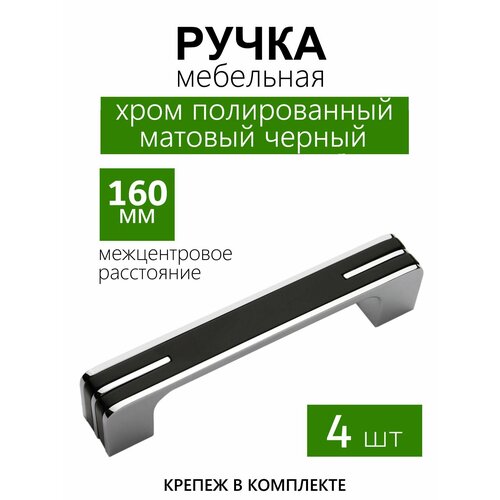 Ручка мебельная скоба MONOHROME, 160мм, матовый черный, комплект 4шт.
