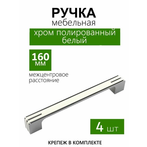 Ручка мебельная скоба MONOHROME, 160мм, белая, комплект 4шт.