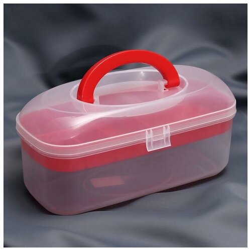Контейнер для хранения мелочей, 7 отделений, 27,8 × 12 × 13 см, цвет прозрачный/красный