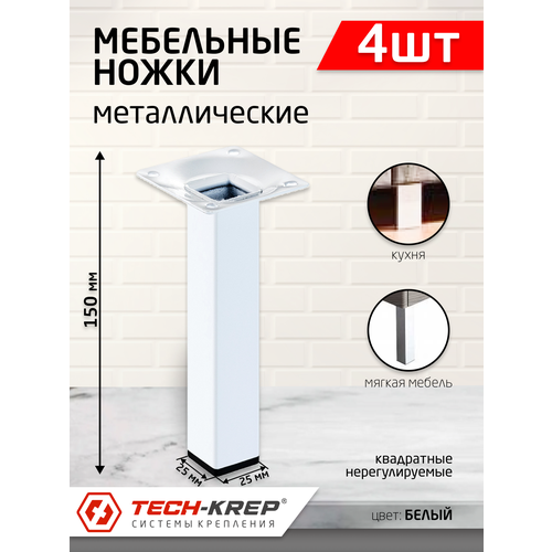 Ножка металл. квадрат, нерегулир, 25х25х150 мм, белая (4шт)- пакет Tech-Krep