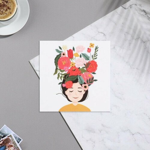 Мини-открытка "Универсальная" девушка, цветы, 7х7 см