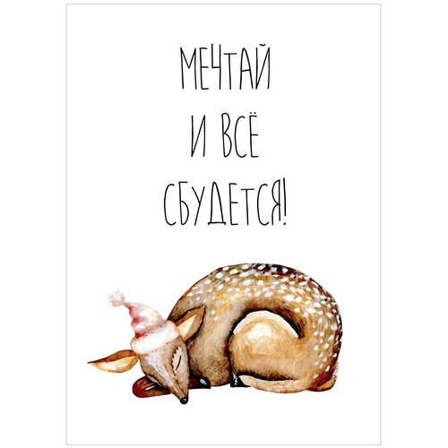 Новогодние открытки мини Олени на подарки на Новый год 2025, набор 20 шт