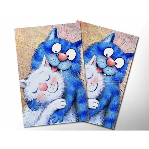 Почтовая открытка. "Нежность". Синие коты