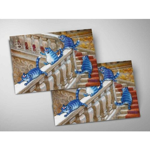 Почтовая открытка. "Эрмитажные коты". Синие коты