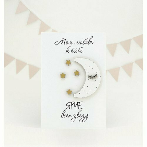 Авторская дизайнерская открытка ручной работы с деревянной аппликацией. 135x95 mm