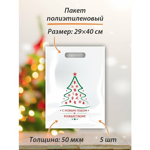 Пакет Амарант новогодний "Елочка" с вырубной ручкой, 29х40 см, 5 шт