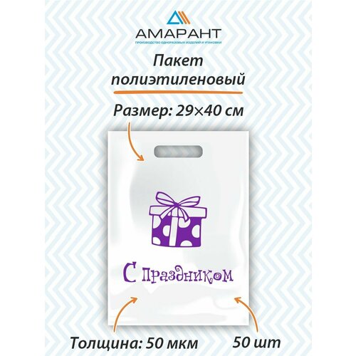 Пакет подарочный Амарант "С Праздником" 29*40 см, набор 50 шт