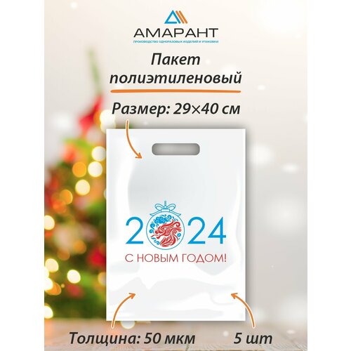 Пакет Амарант новогодний "Дракон" с вырубной ручкой, 29х40 см, 5 шт