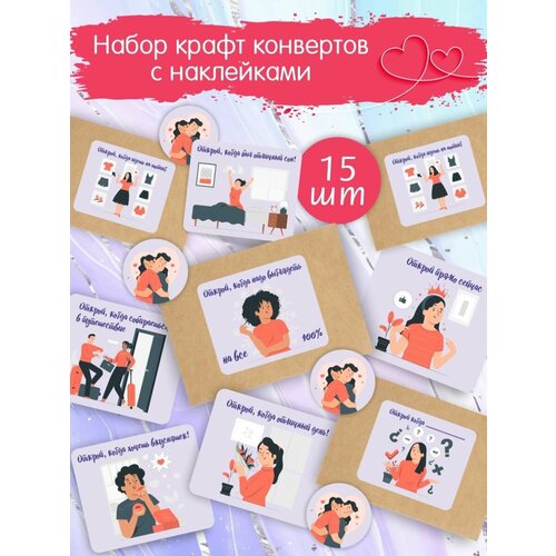 Набор " Амарант" крафт конвертов "Открой, когда… Для пары"