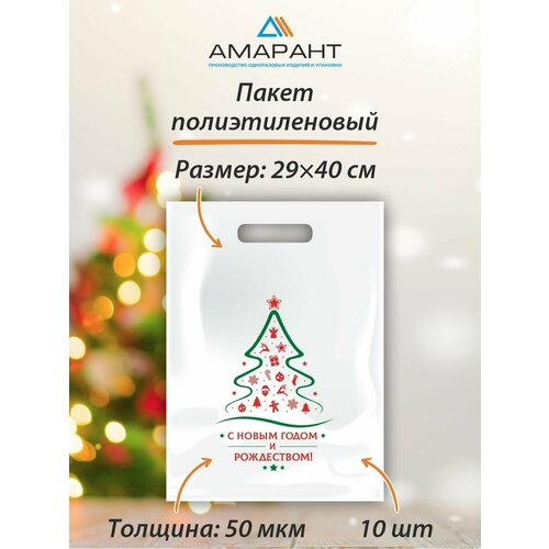 Пакет Амарант новогодний "Елочка" с вырубной ручкой, 29х40 см, 10 шт