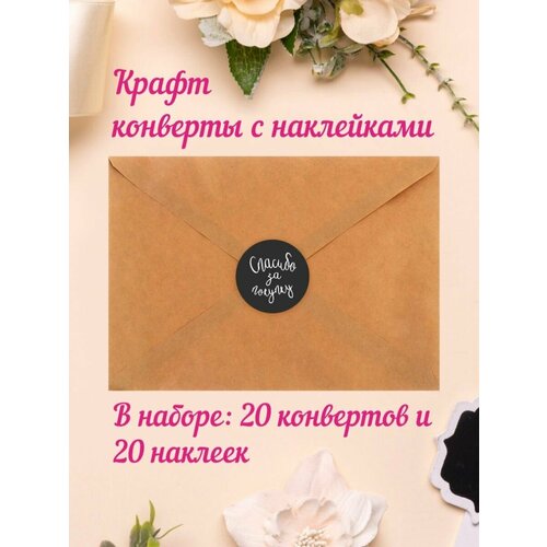 Набор " Амарант" крафтовых конвертов с наклейками "Спасибо за покупку"
