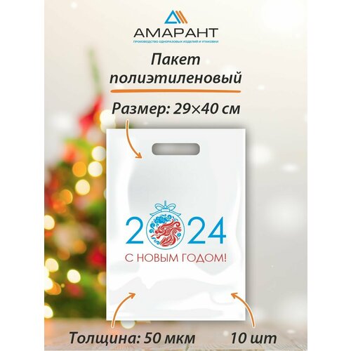 Пакет Амарант новогодний "Дракон" с вырубной ручкой, 29х40 см, 10 шт