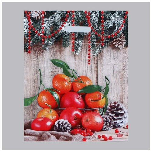 Пакет "Композиция с мандаринами", полиэтиленовый с вырубной ручкой, 40 х 31 см, 60 мкм