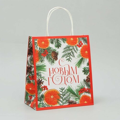 Пакет крафтовый «Новогоднее чудо», 22 × 25 × 12 см