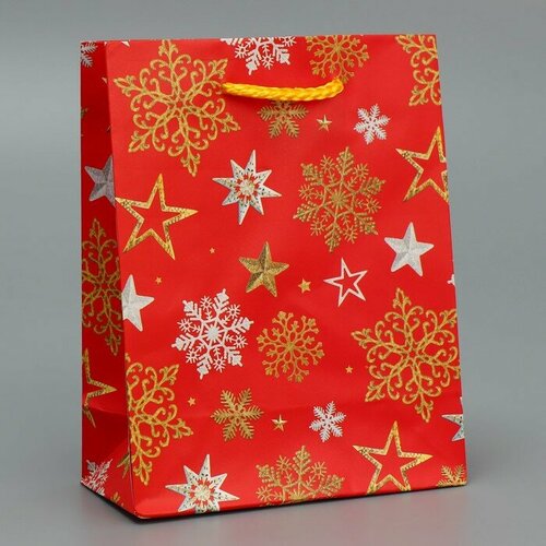 Пакет ламинированный вертикальный «Звёздные снежинки», S 12 × 15 × 5.5 см