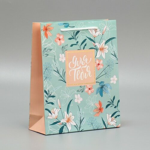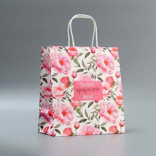 Пакет подарочный крафтовый, упаковка, «Самого прекрасного», цветы, 22 х 25 х 12