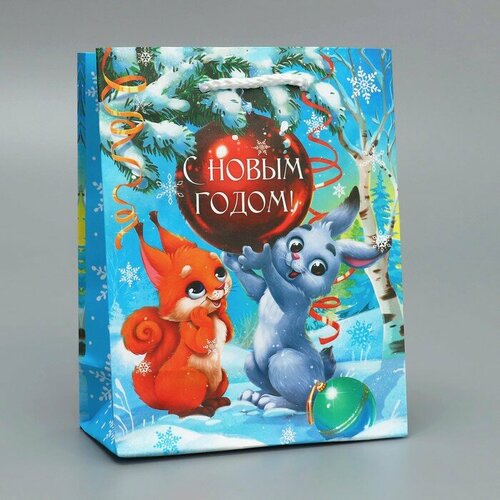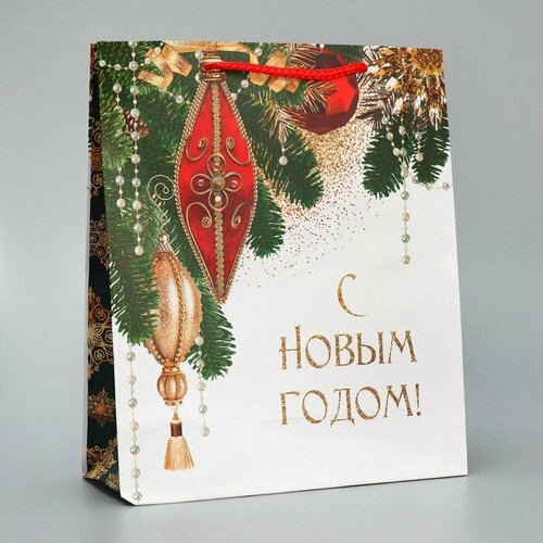 Пакет крафтовый «С Новым годом», 32 × 28 × 15 см