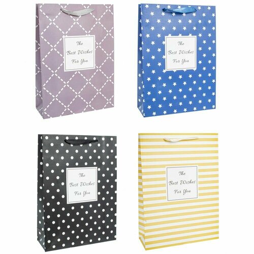 Пакет подарочный (бумага, пл.210г/м2, блок микс 12шт), 26х12х32 см, 4 вида KSM-784160