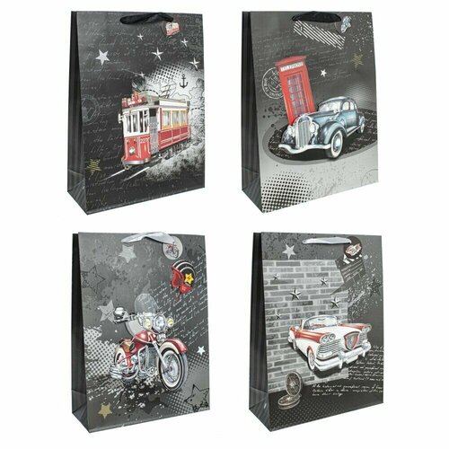 Пакет подарочный (бумага, плотность 210г/м2, блок 12шт), Д30 Ш12 В40 см, 1 шт из 4в.