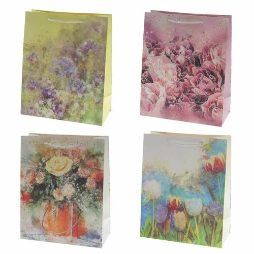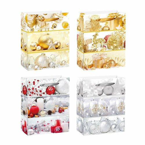 Пакет подарочный (бумага, плотность 210г/м2, блок 12шт), Д18 Ш8,5 В23 см, 1 шт из 4в.