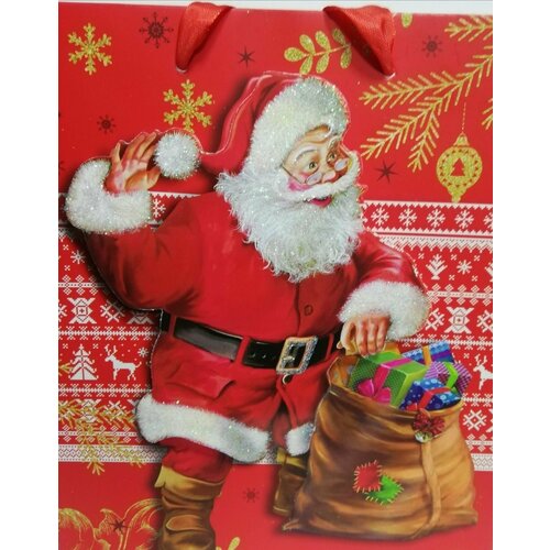 Подарочный пакет: "новогодние"; плотный, цветной с рисунком, с блёстками /; размер 30*12*40 см.