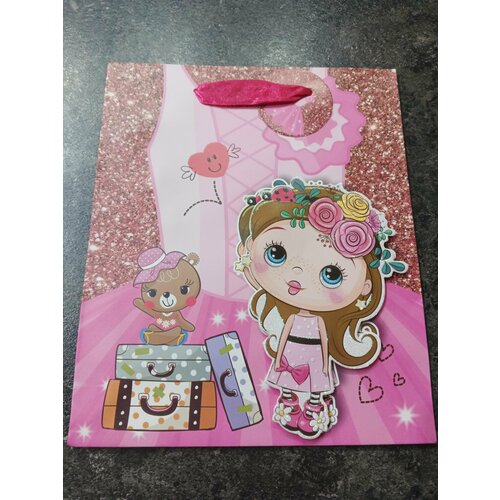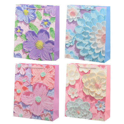 Пакет подарочный цветы 3d-эффект с блестками, асс, 26x10x32 см, МС-6343, 1 шт.