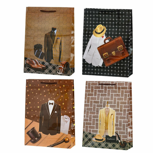 Пакет подарочный мужская тематика-fashion, асс, 32x44x11 см, МС-4097