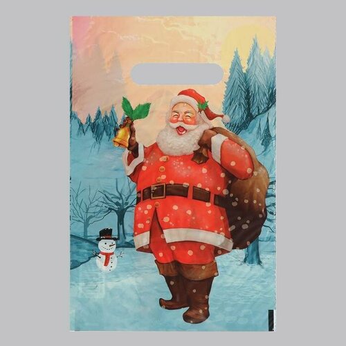 Набор новогодних пакетов, полиэтиленовые с вырубной ручкой, 20х30 см, 30 мкм, 10 штук