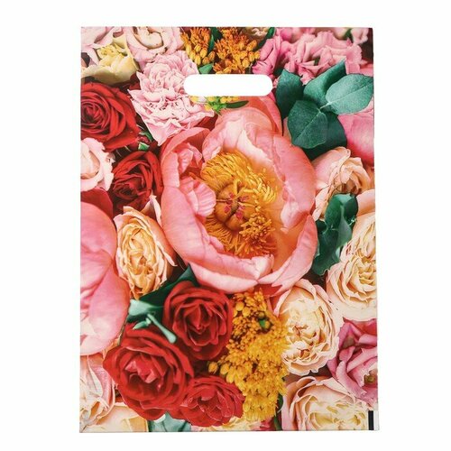 Пакет полиэтиленовый с вырубной ручкой «Много роз» 30 х 40 см, 50 мкм