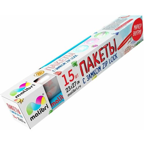 Пакеты для заморозки Malibri с замком и маркером 23*27см 15шт х2шт
