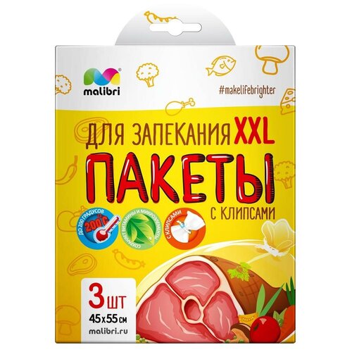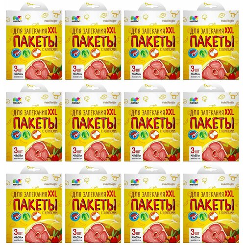 Malibri Пакеты для запекания XXL с завязками, 45х55 см, 3 шт в уп, 12 уп