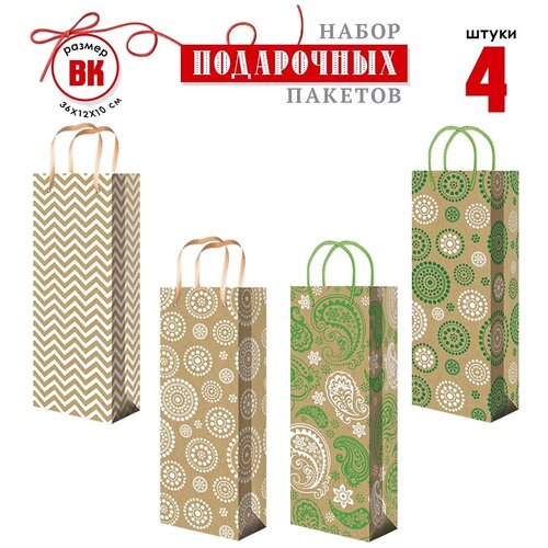 Подарочные пакеты под бутылку "Craft Show". Набор (4 шт). Размер 36Х12Х10 см