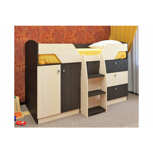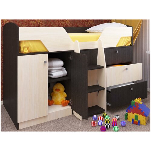 Кровать чердак детская "Лимбо" с ящиками, шкафом, выдвижным столиком, лестницей