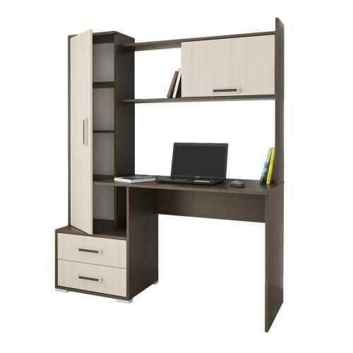 Стол компьютерный Квартет-9, ЛДСП, Венге, Дуб Сонома, 140x172x50 см, 4 ящика, 3 полки.