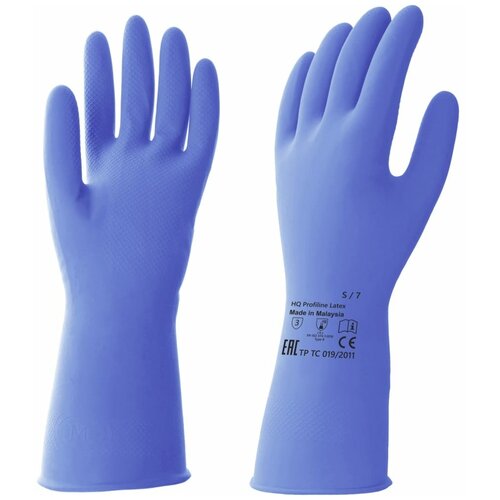 Перчатки латексные КЩС, прочные, хлопковое напыление, размер 7,5-8 M, средний, синие, HQ Profiline, 74734 (арт. 608758) синий, размер 7.5