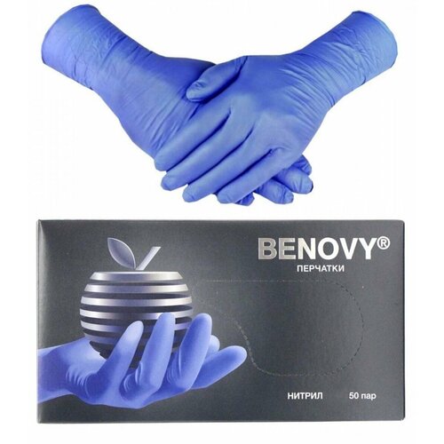 Перчатки нитриловые голубые Benovy, 50 пар, размер S
