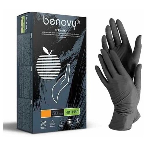 Перчатки одноразовые нитровиниловые BENOVY 50 пар (100 шт, размер L (большой), черные, -