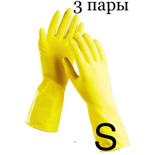 Перчатки хозяйственные резиновые, 3 пары, размер S
