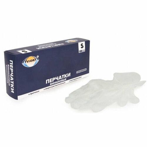 Перчатки одноразовые виниловые, н/о, размер S, 50 пар/уп, AVIORA